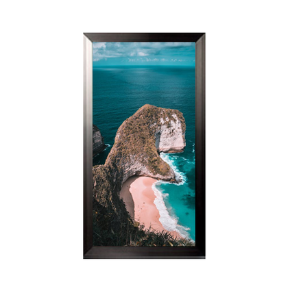 An anodized aluminum frame with an attractive 7/8" wide beveled frame profile which hugs the wall with a 5/8" frame depth.