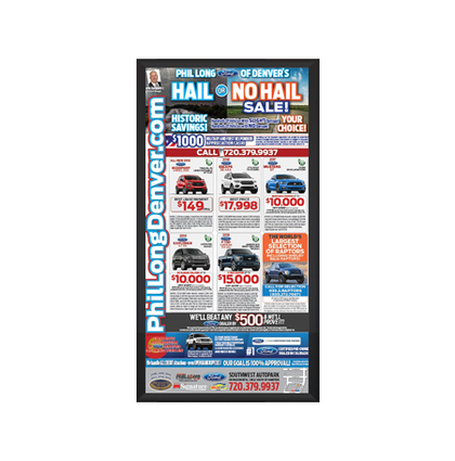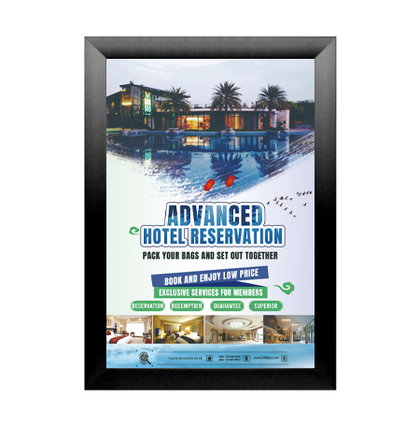 There's no other framing display system like it. Our patented 10 x 20 poster display frames, "SwingFrame" features concealed hinges and gravity lock. The beauty of the SwingFrame is that once it's wall mounted, you can't tell that the frame opens. Just swing open. Insert your 10 x 20 poster or graphic. Swing Close. It's that simple. Unlike permanent 10x20 picture frames, changing posters and signage is easy. You don't have to take it off the wall, and dismantle the SwingFrame to update your marketing and advertising materials.