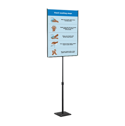 The sturdy, 1/2" diameter steel tube stands to a height of 18", plus the height of the 11x17 sign frame. This tabletop display stand has a practical, eye-catching sign holder height for various countertops and diverse locations.