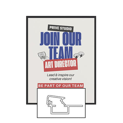 SwingSnaps presents a 2 1/2" wide-edge snap poster frame metal profile for more visual impact, and with a narrow frame depth of 3/4", this wall mount snap frame is ideal for displaying large format posters or to create a bold display frame look for small posters and signs.