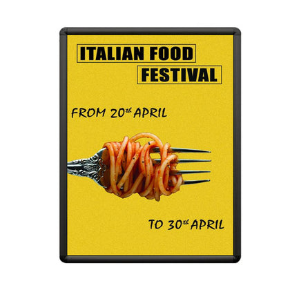 Economically priced, quick-changing, poster snap frames with radius corners allow you to effortlessly place and change your posters, signs, and advertisments.
