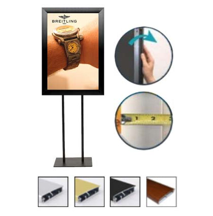A Popular Choice for Retail Stores, Corporations and Institutions, this Colorful Classic Poster SwingFrame poster display is unique, designed with more frame color choices - in fact 75+ more metal frame colors, and the rounded metal frame style includes a matboard, a design element to further enhance the poster display, allowing you to create a colorful design that fits smartly into your interior decor.
