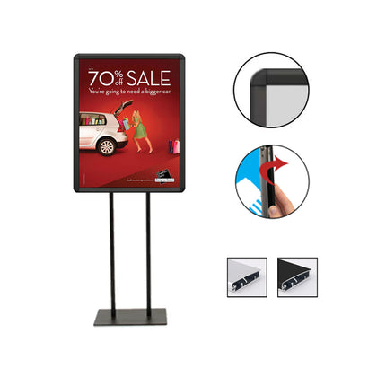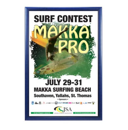 Snap-open aluminum poster picture frames and sign frames 22x28 or any other poster frame size are the most popular changeable framing display system purchased for numerous display applications for either indoor or outdoor display. Easily front load or change 22x28 Posters, Signs, Advertising, Photography and Graphics.