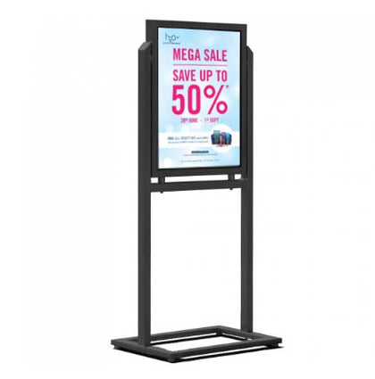 Whether it’s used as a marketing tool to brand your company logo, slogan, organization or some other message, SwingFrame's classic poster display frame with header panel lets you decide what needs emphasis, a great way to make to make a more effective poster display.