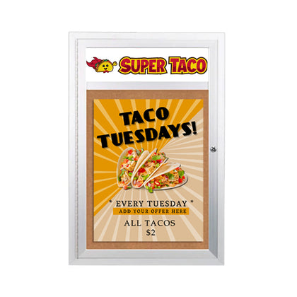 Whether it’s used as a marketing tool to brand your company logo, slogan, organization or some other message, SwingFrame's classic poster display frame with header panel lets you decide what needs emphasis, a great way to make to make a more effective poster display.