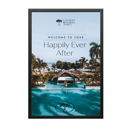 There's no other framing display system like it. Our patented 24 x 60 poster display frames, "SwingFrame" features concealed hinges and gravity lock. The beauty of the SwingFrame is that once it's wall mounted, you can't tell that the frame opens. Just swing open. Insert your 24 x 60 poster or graphic. Swing Close. It's that simple. Unlike permanent 24x60 picture frames, changing posters and signage is easy. You don't have to take it off the wall, and dismantle the SwingFrame to update your marketing and advertising materials.