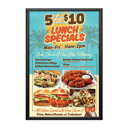 Aluminum Snap Frames 36 x 96 are the most popular changeable poster displays for good reason. Simplicity, variety of snap frame styles and low cost make it an ideal choice for signage framing projects. Frame finishes is another good reason. We offer the popular 36 x 96 poster frame finishes including: satin silver, gold and black frames. Finishes that fit comfortably within numerous interior retail store decors. One snap open 36 x 96 poster display frame or several 36x96 sign frames or thousands of 36x96 frames, “poster snaps” remains the favored choice for small and large businesses, retail stores, corporations, institutions and as a POP signage display frame fixture. Wall mount and snap open your 36 x 96 snap frame, update your 36x96 poster size, and snap shut. That's it!