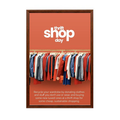 Cost effective, wall mount wood snap frames for small and large signage projects are accentuated with a simulated wood wrap finish and are the ideal choice for many quick change display applications that require an interior touch with a wood finish.