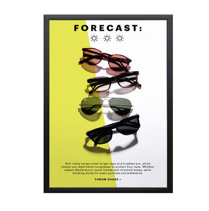If ordering our patented SwingFrame Poster Display, Slide-In Poster Frame, SwingSnap Snap Open Poster Display, or SwingStand Floor Poster Displays we offer the benefit of shipping your poster in our frame at time of order. This will reduce shipping costs and tracking numbers for your order.