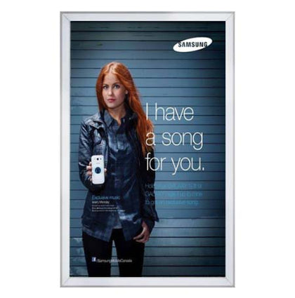 How quickly can you change a poster? The quick-change snap frame enables front-loading graphic materials in less than 60 seconds by hand.