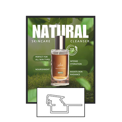 SwingSnaps presents a 2 1/2" wide-edge snap poster frame metal profile for more visual impact, and with a narrow frame depth of 3/4", this wall mount snap frame is ideal for displaying large format posters or to create a bold display frame look for small posters and signs.