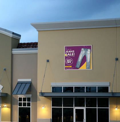 Poster Snap banner holder is made of silver anodized aluminum which gives the display a sharper look when compared to plastic banner holders, and it’s durability is ideal for long term advertising on store windows, when suspended from the ceiling, or when wall-mounted.