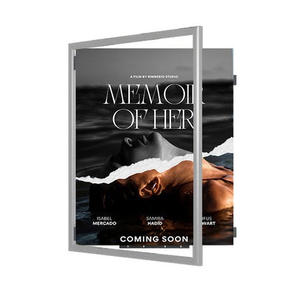 "SwingSnaps" custom snap frames 27x39 are non-illuminated poster display frames. Select from a variety of aluminum poster snap frame display frame profiles to meet your indoor or outdoor movie framing requirements: wall-mounted or for surface mounting onto cabinets and point of purchase fixture displays