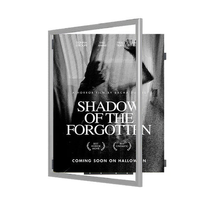 - Easy Access: Features hidden hinges and a gravity lock, allowing the frame to swing open from the front for fast poster changes.