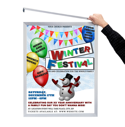 If ordering our patented SwingFrame Poster Display, Slide-In Poster Frame, SwingSnap Snap Open Poster Display, or SwingStand Floor Poster Displays we offer the benefit of shipping your poster in our frame at time of order. This will reduce shipping costs and tracking numbers for your order.